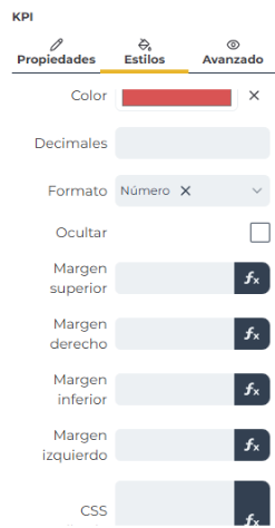 - Formato: Esta propiedad permite modificar el color del texto y números dentro del componente.