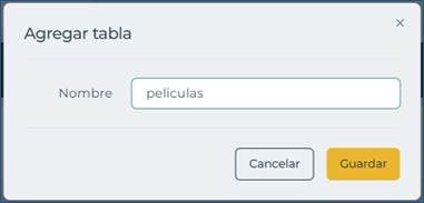 1. Ingresamos el nombre de nuestra tabla Películas. Es importante saber que el nombre de nuestra tabla no puede llevar caracteres especiales y no deben empezar con número.
