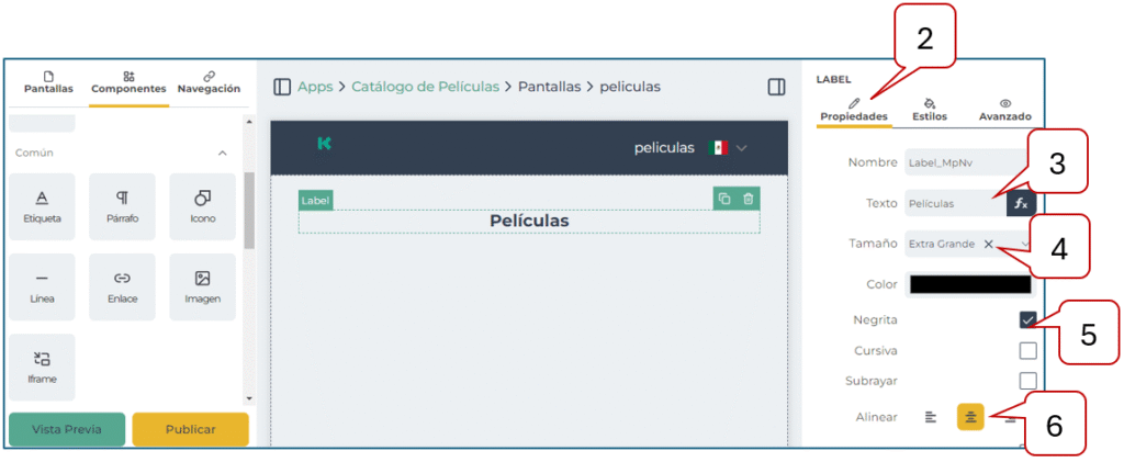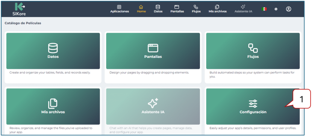 1. Seleccionamos la aplicación en la que estamos trabajando “Catálogo de Películas”.
