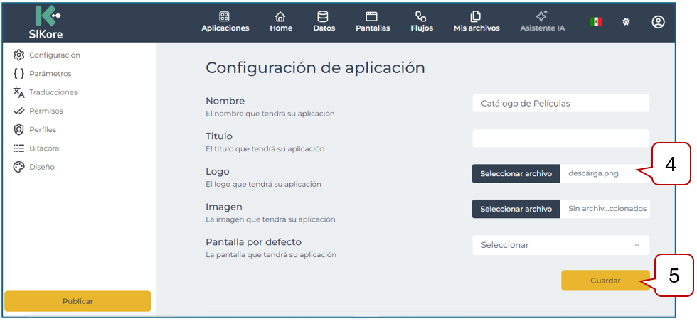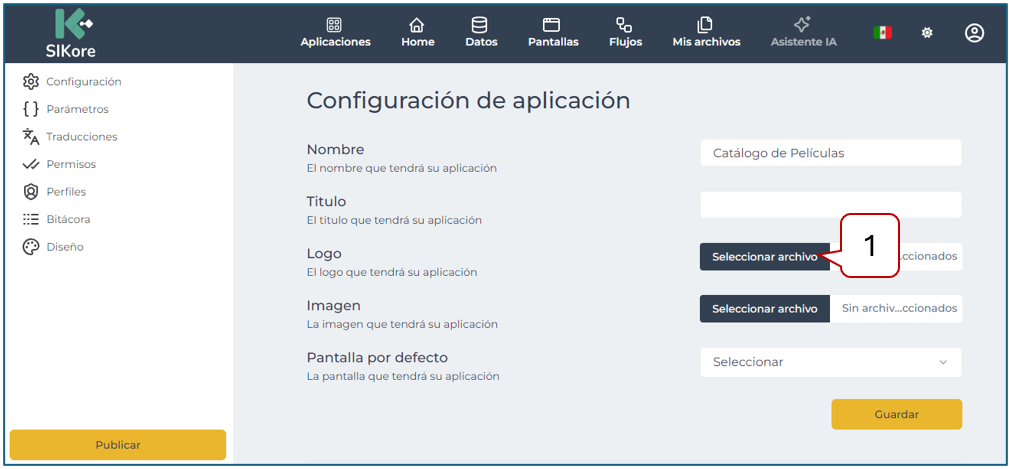 Dentro de la configuración de nuestro Catálogo de Películas SIKore nos permite poner un logo que sea representativo para nuestra aplicación.