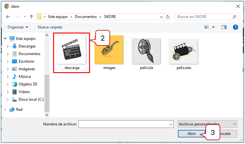 1. Damos clic en botón Seleccionar archivo del campo Logo para que SIKore nos presente la pantalla de nuestros archivos.