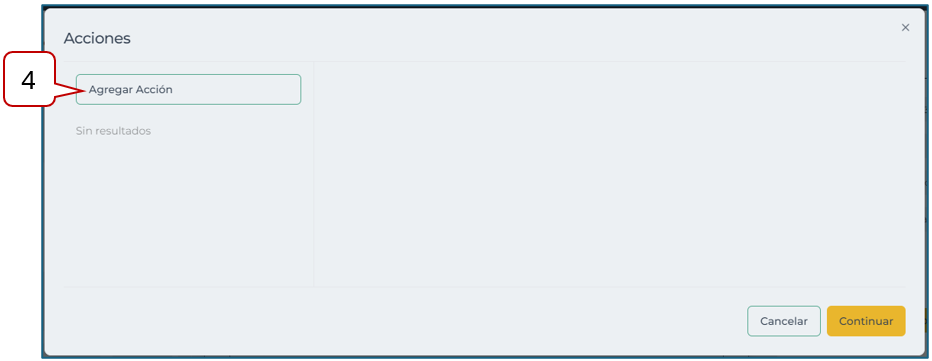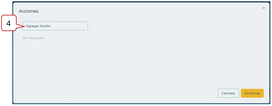 1. Damos clic sobre el botón Agregar Acción que se presenta en pantalla.