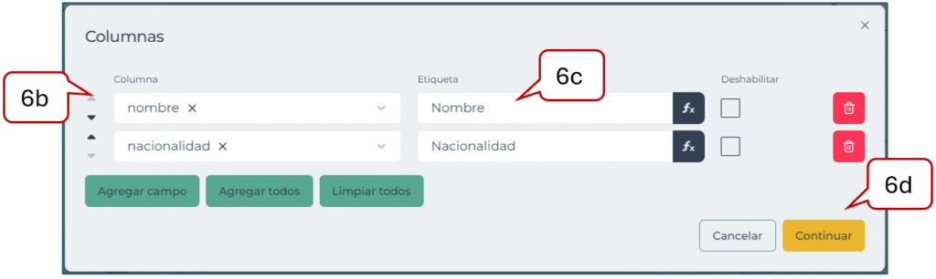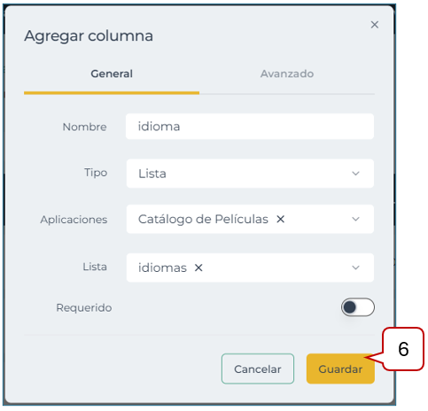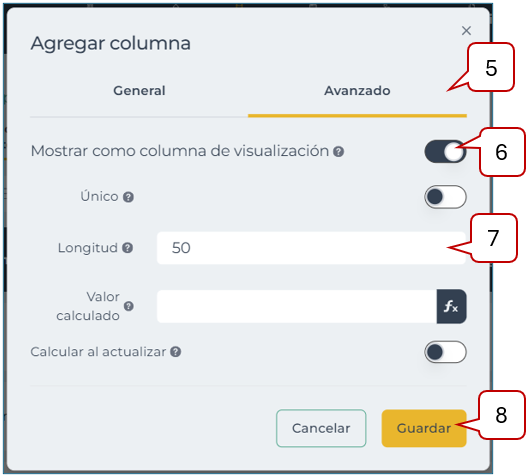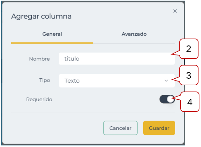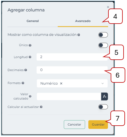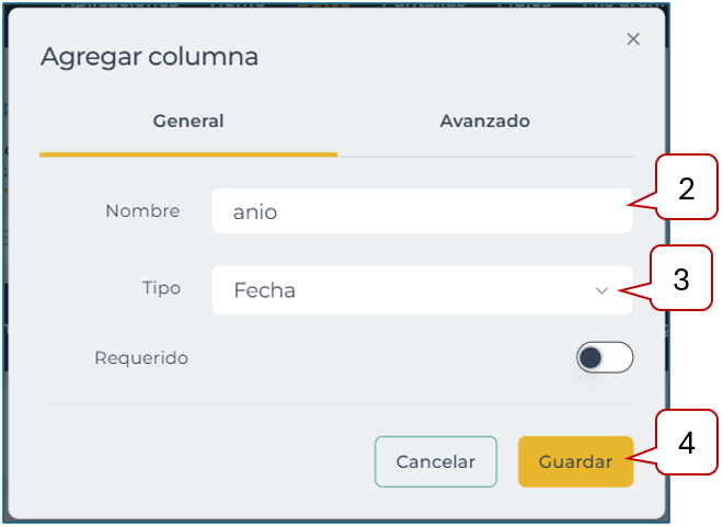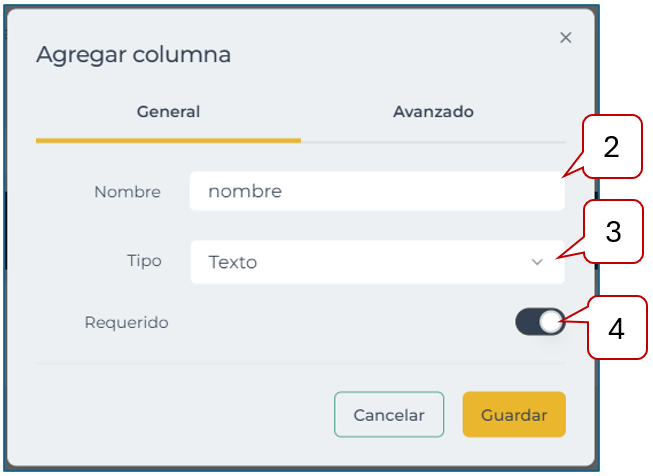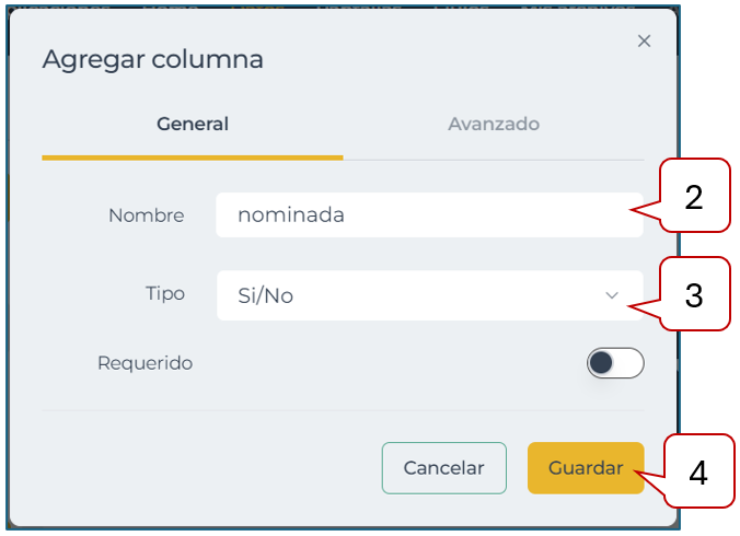 1. Damos clic en la sección “Avanzado” para configurar los detalles de la columna nombre.