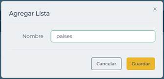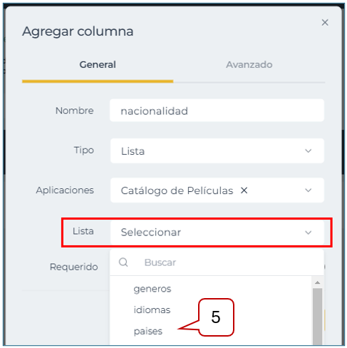 1. Seleccionamos la lista países creada previamente en el módulo Listas que pertenece a nuestra aplicación Catálogo de Películas