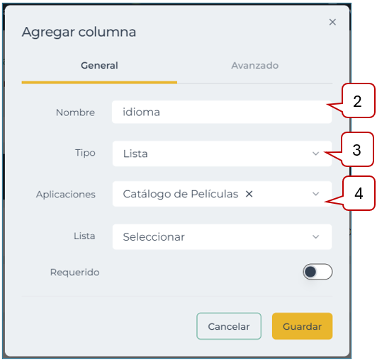 1. Seleccionamos el campo Requerido ya que necesitamos que todas las películas tengan un título.
