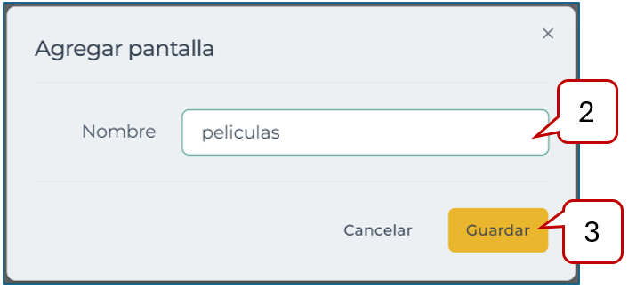 1. En campo Pantalla seleccionamos la pantalla a la que nos va a dirigir nuestra aplicación una vez que guardemos los datos de la película que estamos registrando.