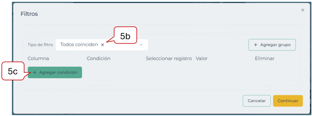 1. En campo Tipo de filtro seleccionamos la opción Todos coinciden.
