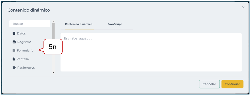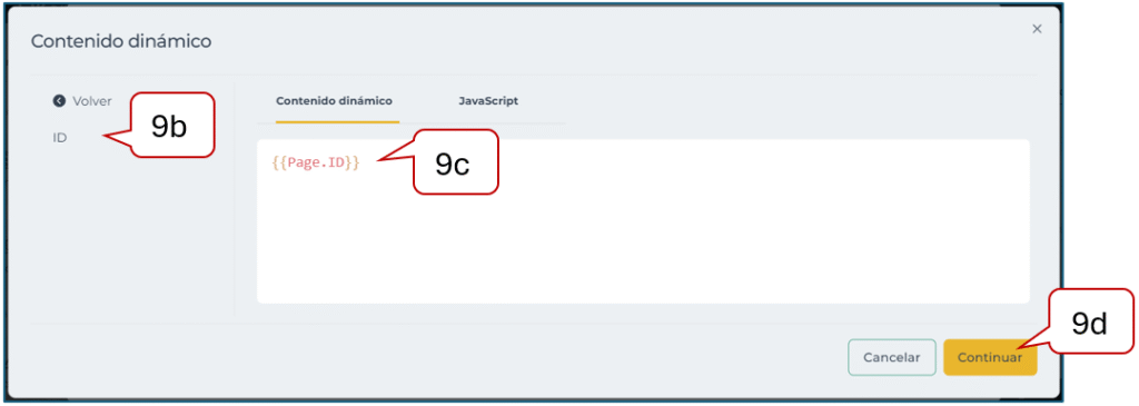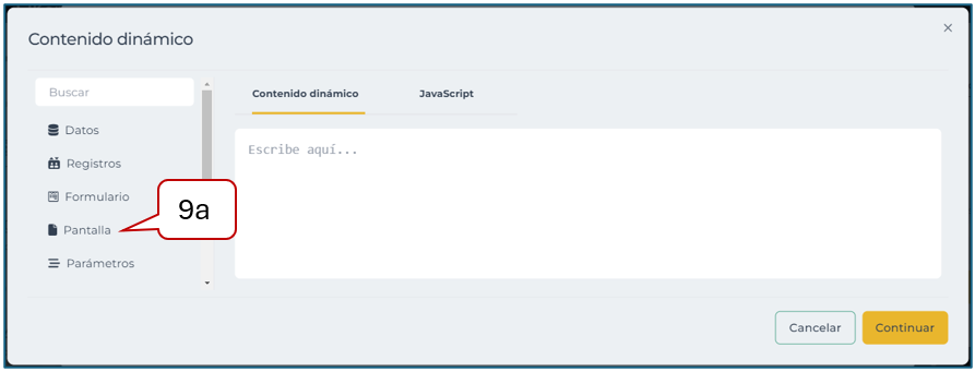 1. a. SIKore nos presenta la pantalla de Contenido Dinámico para seleccionar la opción Pantalla para que nos muestre el parámetro ID.