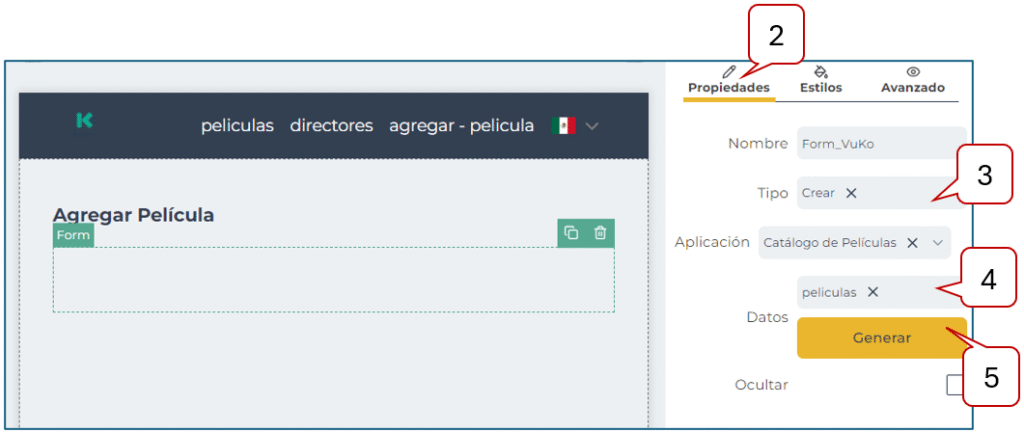 El componente formulario lo usaremos para configurar y presentar los campos que usaremos para editar la información de las películas que tenemos registradas, para eso debemos configurar el componente por medio de sus propiedades, para hacerlo debemos: